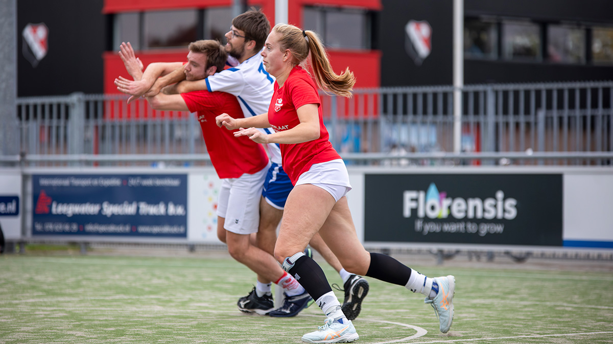 Vanaf het eerste fluitsignaal stond er een geconcentreerde ploeg op het veld. De druk in de verdediging werkte uitstekend: DVS’69 kwam nauwelijks tot soepele aanvallen, terwijl wij in hoog tempo maar gecontroleerd onze kansen wisten te creëren. Aanvallend was het mooi om te zien hoe iedereen elkaar in stelling bracht en de rollen goed werden verdeeld en afgewisseld. Binnen 23 minuten hadden al zeven van de acht basisspelers gescoord; alleen Xander ontbrak nog op het scoreformulier, maar hij zorgde daar in het begin van de tweede helft zelf voor. Ook invallers Mark en Tessa konden hun naam nog bijschrijven met fraaie doelpunten.